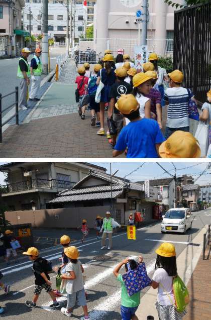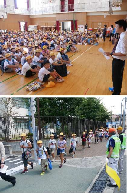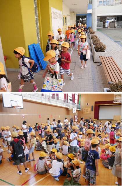 避難訓練で集合して集団下校!