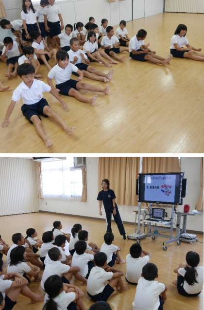 5・6年生の発育測定がありました。測定の前には、保健室の先生から健康にかんする話があります。救急力の練習をしていました。9月9日は救急の日ですね。
