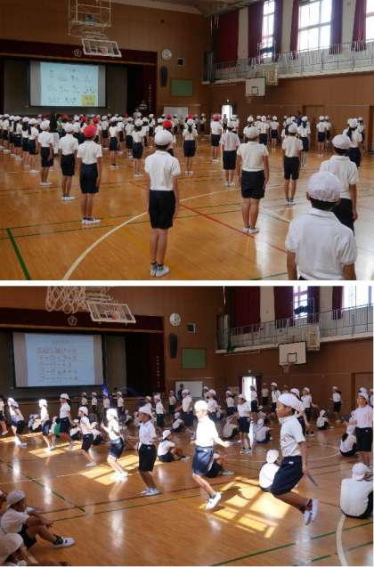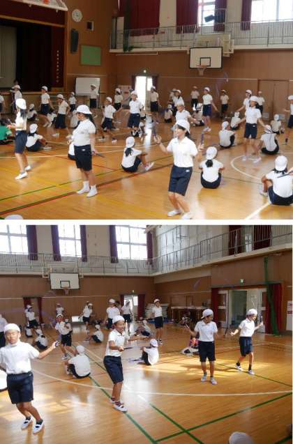 5・6年生でも運動会にむけた練習が始まりました。例年の組み立て体操は安全面を考えて、タワーや高段ピラミッドなどは禁止となっています。焼野小学校では基本的な組立体操になわとび演技をプラスして、新しい団体演技に挑戦していきます。
