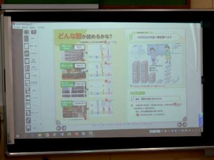 先生方の授業パソコンには、夏にソフトが全面的に強化されました。算数のデジタル教科書が導入されています。ビデオやいろいろなしかけがついていて、授業が分かりやすいように活用できます。