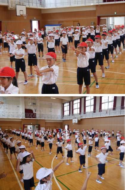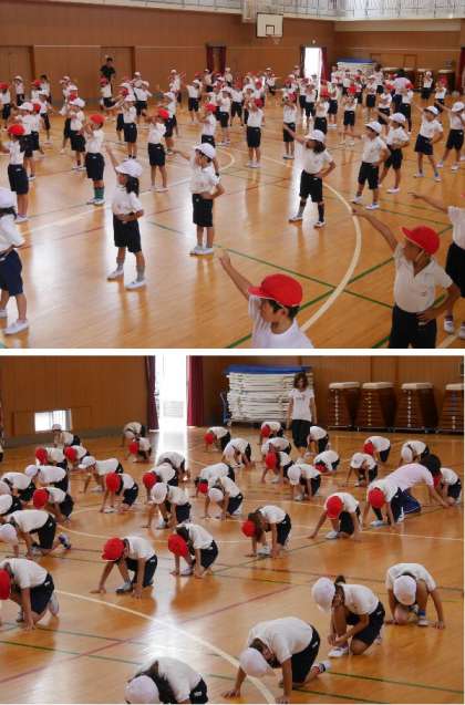 1・2年生の運動会の練習は、少しずつ繰り返しながら練習しています。いろいろなポーズをひとつずつ頑張っています。