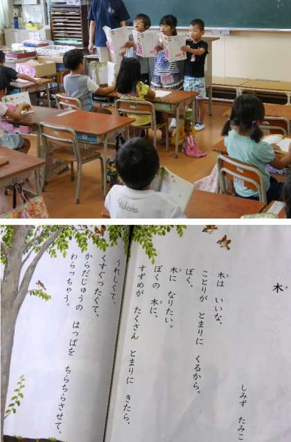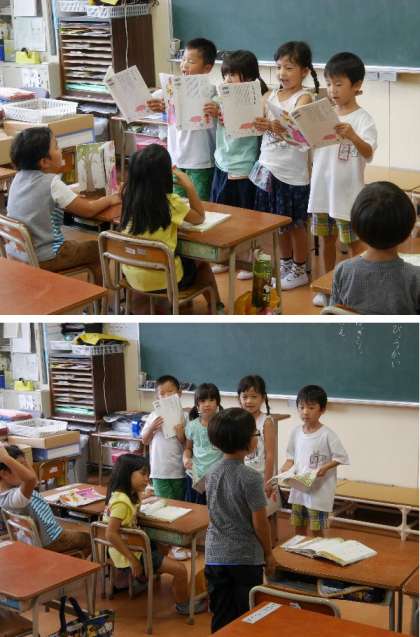 1年生の国語では、「木」を音読練習して皆の前で発表しました。友だちからよかった点を感想として発表していました。とても大きな声でしっかり音読できていましたね。