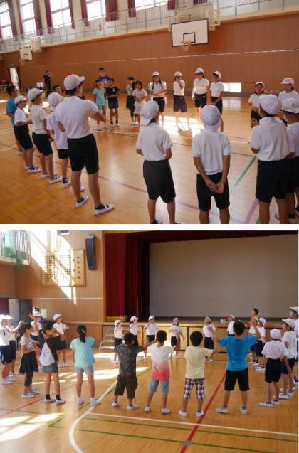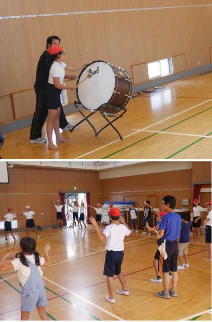 応援団の練習は放課後です。太鼓の力強いたたき方に苦労しながらがんばっています。応援歌は替え歌で録音する予定です。