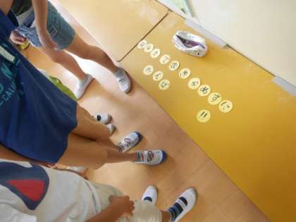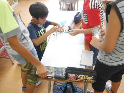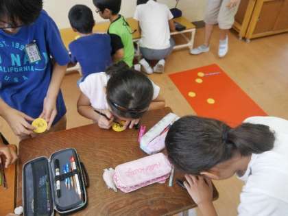 4年生が学級旗を作り始めました。赤と白にわかれて作ります。