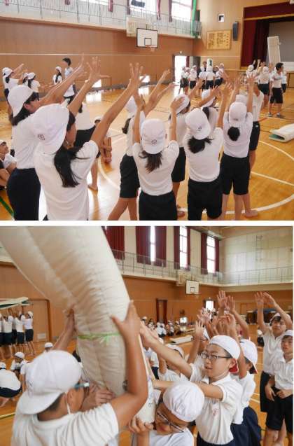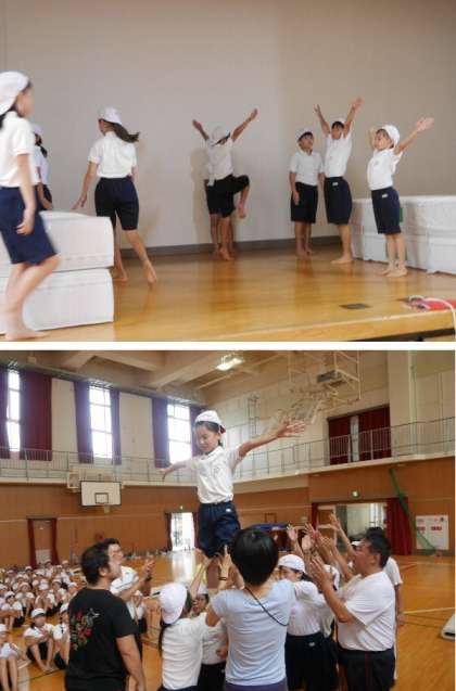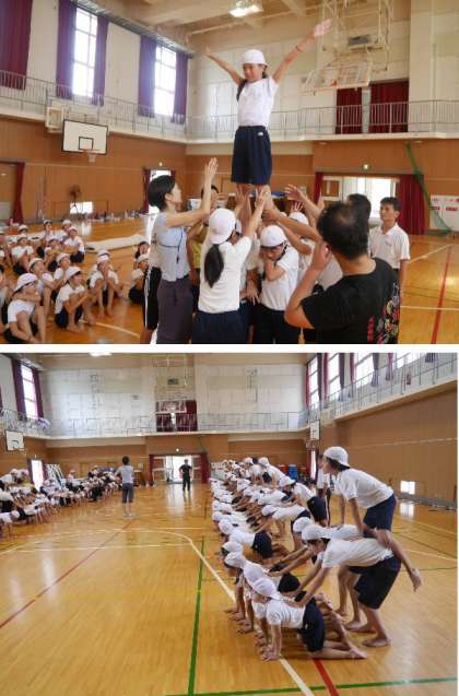なわとび、新しい技、繰り返し練習と少しずつ計画的に練習を進めています。トラストフォールの練習ではじめて上がる練習です。