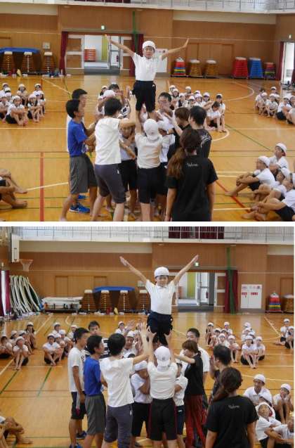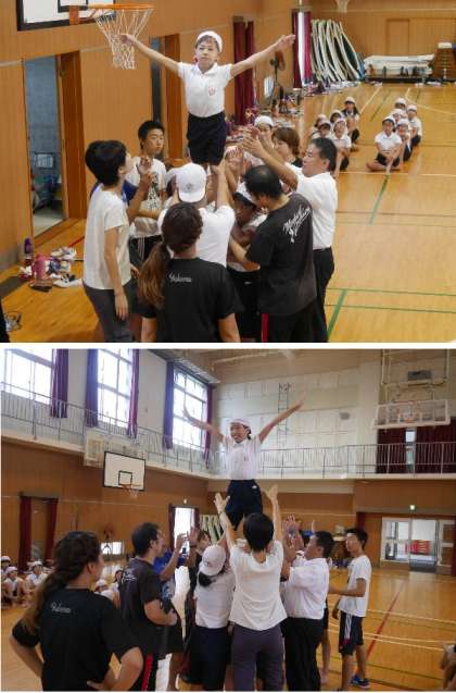 5・6年がむずかしいわざにチャレンジ!声をそろえてタイミングをあわせて皆で気持ちを集中しての練習です。皆から拍手がわきおこります。