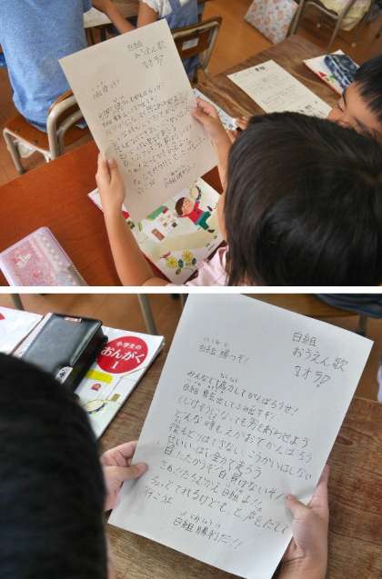 1年生が応援歌の練習をしています。楽しくもりあがる応援歌ですね。