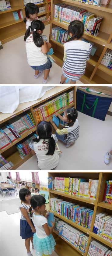 毎週水曜日は図書補助員さんが図書室にいてくれています。低学年の子どもたちがたくさん図書室で本を選んで借りていました。興味のある本はみつかりましたか。