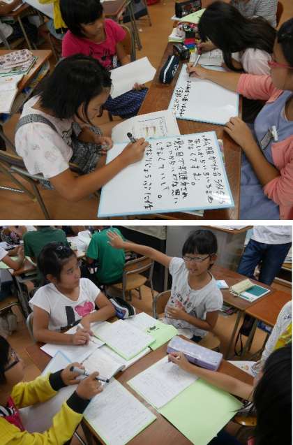 5年生の国語の授業ではディベートをグループで行います。論題を決めて異なる立場で主張しあいます。資料を集めて準備をしています。