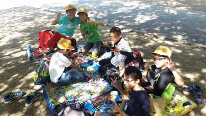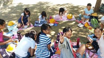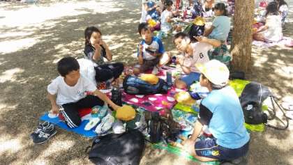 公園でお弁当です。風がさわやかで気持ちいいです。