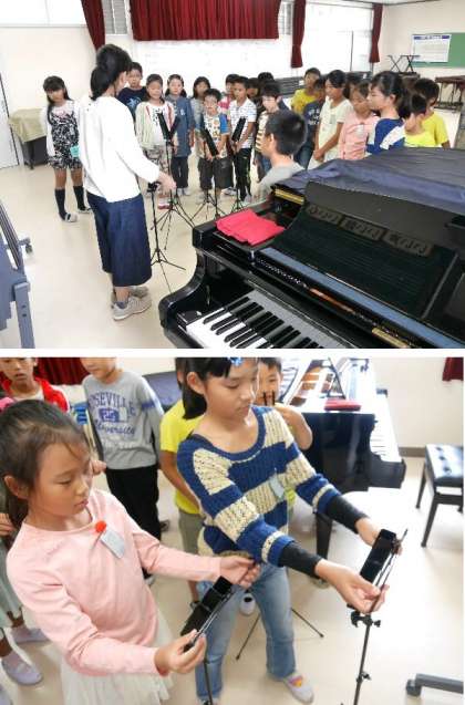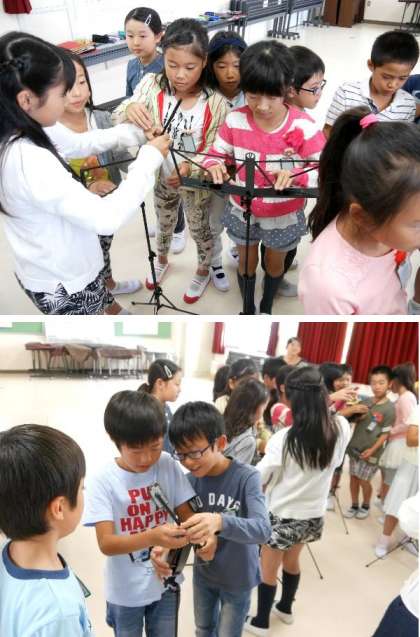 4年生は音楽発表会にむけて合奏の練習をしています。各楽器用の楽譜たてを組み立てています。けっこうむずかしいんです。