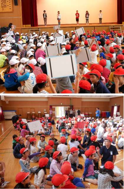 今日の児童集会は三択クイズでした。方言などの言葉の意味をあてていきます。なかなか難しかったですね。全問正解の班は少なかったですが、皆から拍手をしてもらいました。