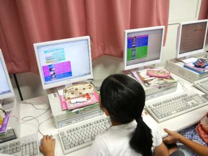 5年生の理科の授業です。パソコン室でインターネットを使って雲の種類を調べていました。夏から秋になって、だいぶ雲の形が変わりましたね。