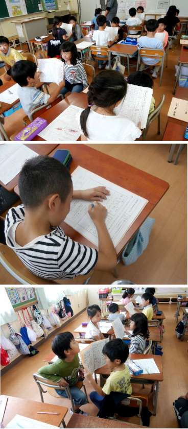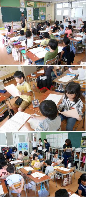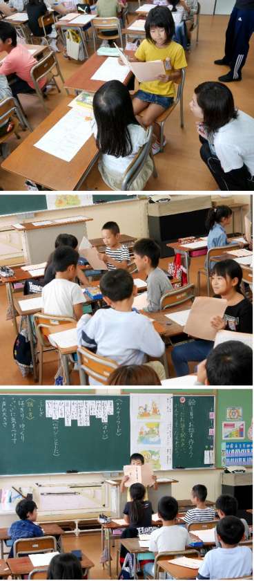 2年生の国語がありました。2年生では、絵から場面の様子を想像して、文と文の続き方に気を付けて、一つ一つの場面がつながるように物語を書くことができることを目指して学習しています。自分で作った物語を読みあって、感想をいったり、とても楽しそうに学習していました。