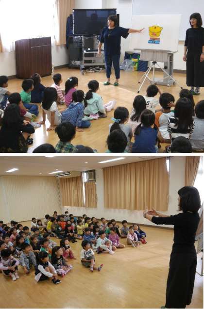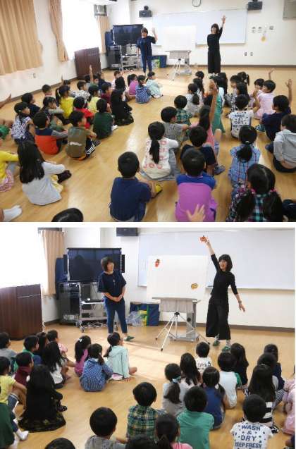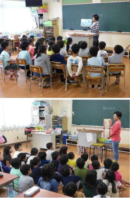 図書ボランティアさんによる読み聞かせがありました。1年生は多目的室ではじめてのパネルシアターでした。カレーライスづくりを、いろいろな野菜をいれて作るという内容でした。2年生でも読み聞かせがありました。