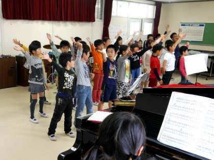 4年生が音楽発表会の練習をがんばっています。