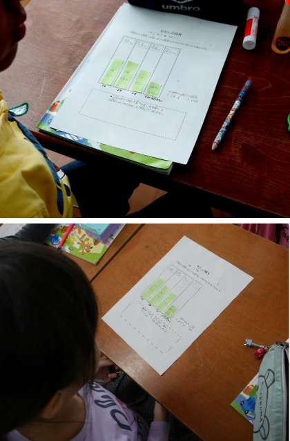 保健室の先生が4年生で授業をしています。1年生からの身長のデータをもとに、年ごとにどれだけ身長が伸びたかをグラフにして体の成長について考えています。