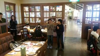 だいぶ雲って来ました。エルパティオで昼食です。エビカレーです。