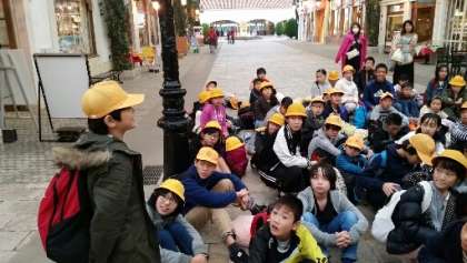 雨が強くなってきました。予定を変更して、集合してスペイン隊からの感想を聞きました。