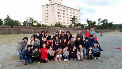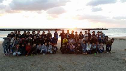 アルバム用の写真と学級写真を撮りました。朝日は最高でした。