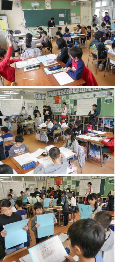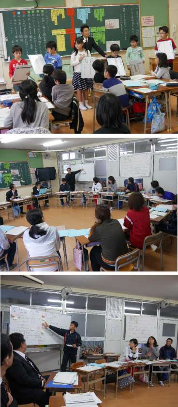 大学の先生に来ていただき、校内で研究授業と検討会を行いました。4年生の国語「広告と説明書を読み比べよう」では、それぞれの目的に合わせた表現の違いを読み取り、班で交流したり、ホワイトボードで発表しました。研究事業のあと全教員で授業検討会をおこない、大学教授先生から新しい学習指導要領にむけたお話をいただきました。