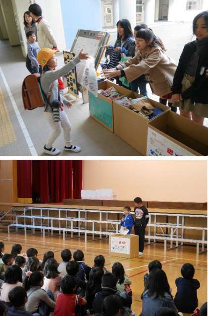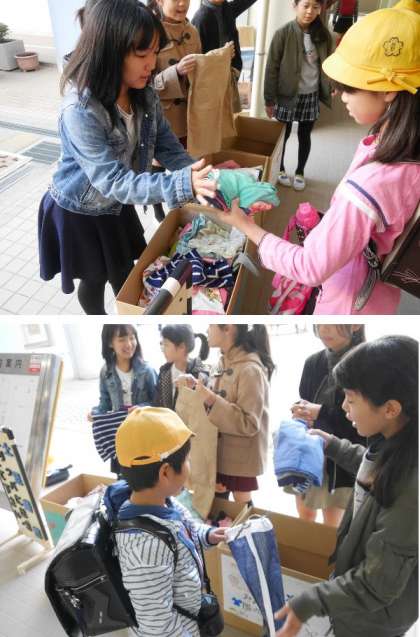 毎日のように、登校時にいらなくなった子ども服をもってきてくれています。ありがとうございます。児童集会では6年生がボランティアの取り組みを皆に呼びかけました。