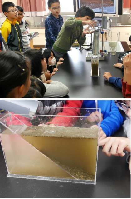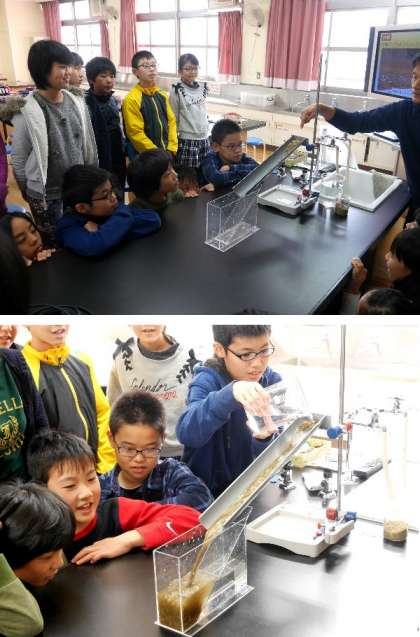 6年生が水の流れについて学習しています。実際に実験してみるといろんなことがよくわかりますね。子ども達の目も輝いています。