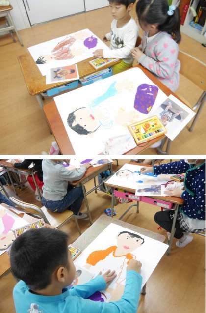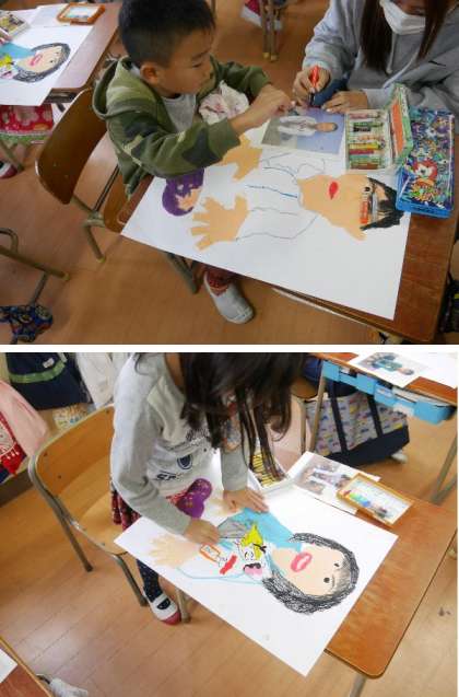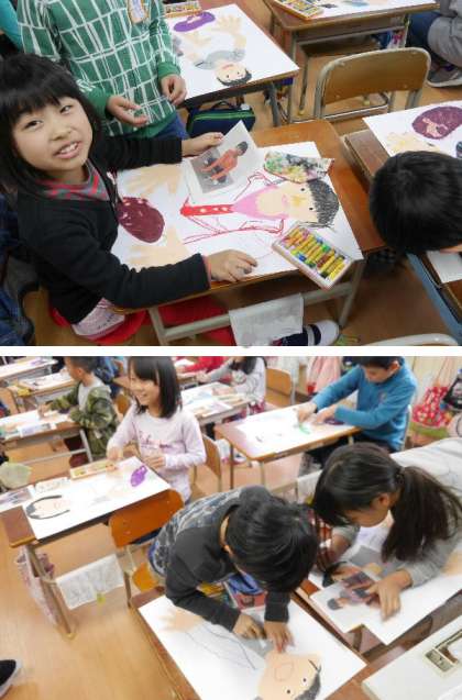 2年生の図工では、時間をかけていもほりの絵に取り組んでいます。細かい色づかいなどリアルに描き上げています。