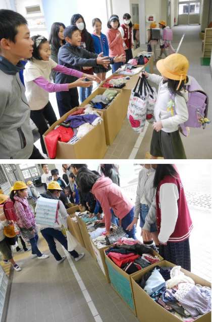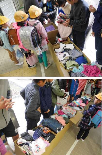 6年生は、1学期に出前授業をうけて、世界で服がなくて困っている子どもたちに届けようとする取り組みをしています。回収は明日で終了します。たくさんの子ども服が集まりました。ご協力ありがとうございました。