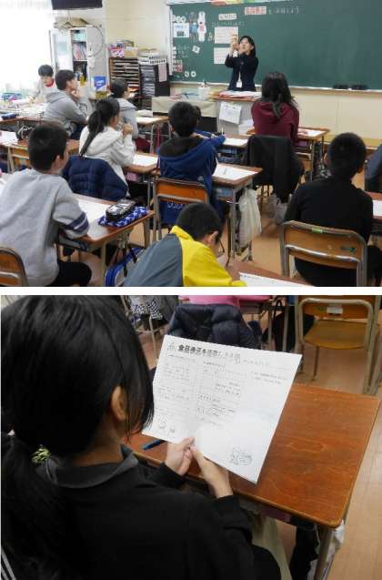 鶴見区の栄養教諭の先生にきていただき、栄養指導を6年生で行っていただきました。今日は、食品表示についての学習です。食品表示だけをみて食品をあてるクイズをしながら楽しく学習できました。