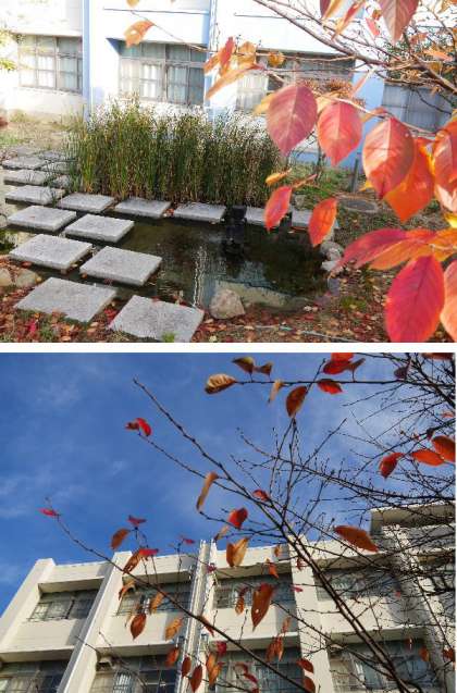 焼野小学校の池のまわりには、紅葉した桜の葉がひきつめられ、葉も少なくなってきました。明日からいよいよ師走です。今年も1カ月となりましたね。