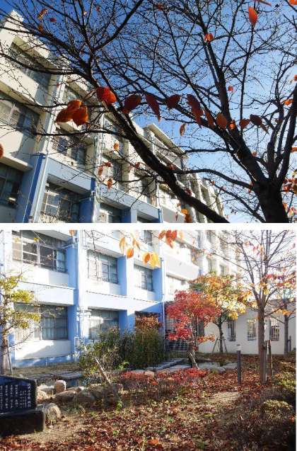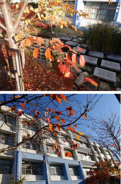 とても天気がよく、きらやかな日差しがさしこんで、晩秋の焼野小学校を照らしていました。とても心にのこったので、おもわずパチリと撮りました。