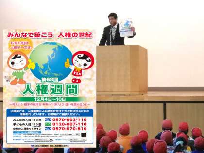 今日の全校朝会では、校長先生から人権週間についてお話ししました。12/4〜12/11まで人権週間です。12/11は国連で世界人権宣言が採択された日にちなんだものです。今年のスローガンは「考えよう相手の気持ち、未来につなげよう違いを認め合う心」です。また、自己肯定感についてはお話ししました。ありのままの自分自身を大切にできる感覚をもってほしいです。