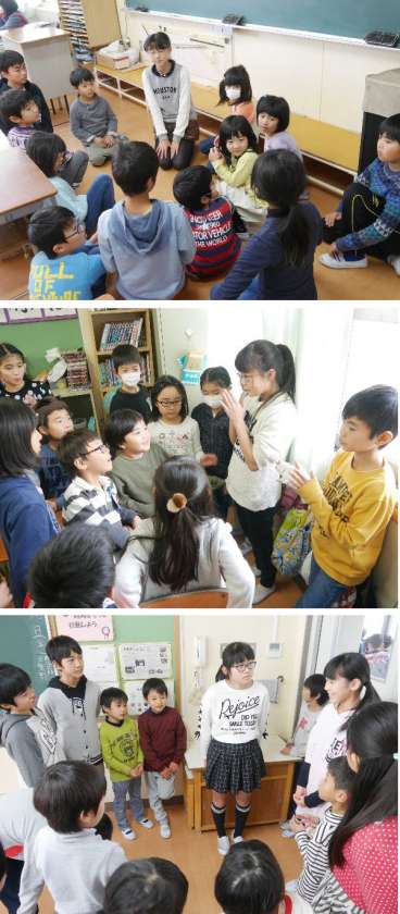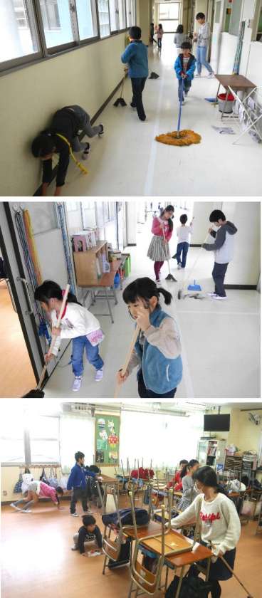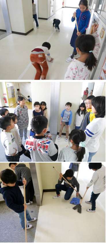 今週はたてわり清掃です。今日がその最終日でした。掃除が終わると、たてわり班ごとに意見をだしあって反省をしています。たてわり班の絆が深まりましたね。