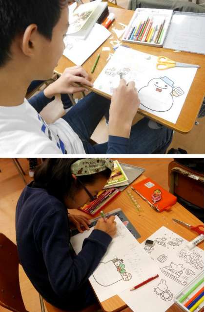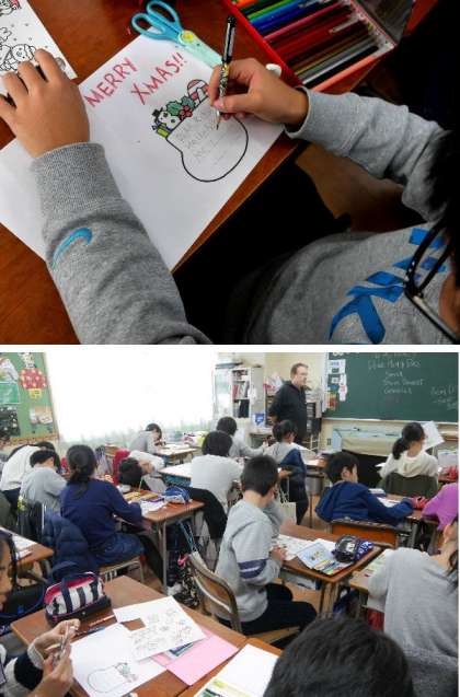 茨田北中学から英語のスティーブ先生がきてくれました。6年生でクリスマスカードを作成しました。もちろんメッセージは英語ですね。