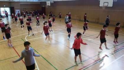 ジャンプアップ大会当日となりました。学校で練習して会場にむかいます。