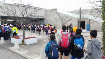 ジャンプアップ大会の応援に先輩たちもかけつけてくれました。会場へ出発します。
