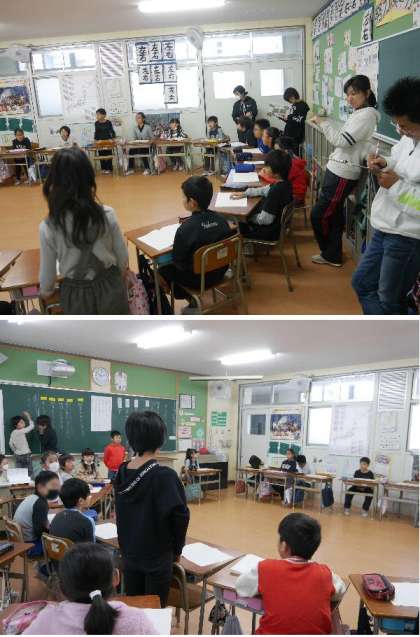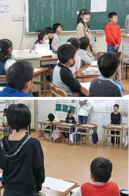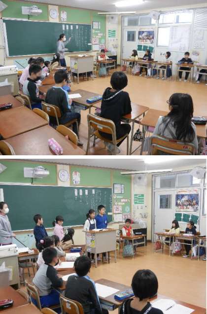 4年生で国語の研究授業が行われました。「クラスで話し合おう」ということで、司会、提案者、記録、参加者にわかれて、役割を意識しながら、課題にそって話し合います。課題「昼休みの遊びに全員が参加するためには」「清潔調べで100パーセントにするには」というものです。司会が進行し、提案者が課題について説明し皆が生けんを出し合います。