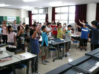 5年生の音楽では、手話をつかいながら歌をうたいました。みんな上手に歌えていますよ。