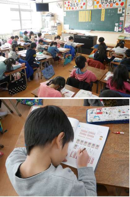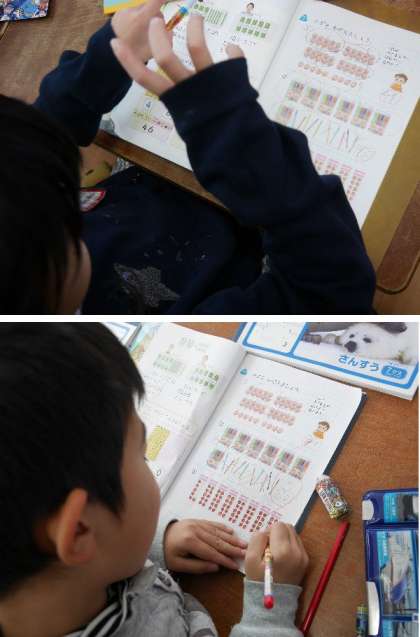 1年生の算数の授業です。だんだん大きい数を使っていきます。大きい数を数えているところです。