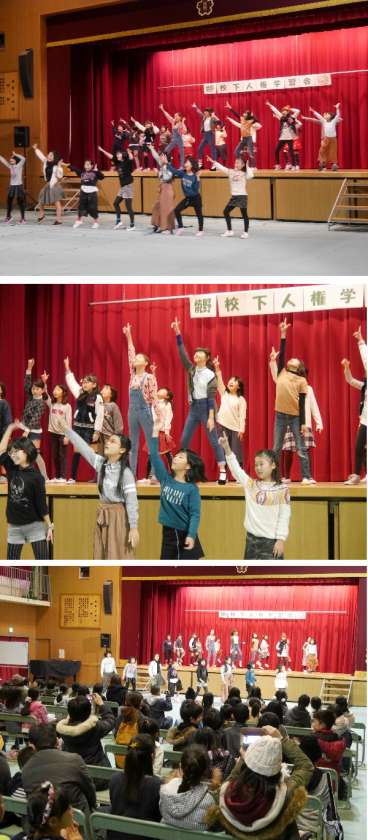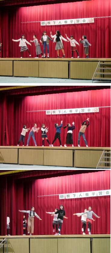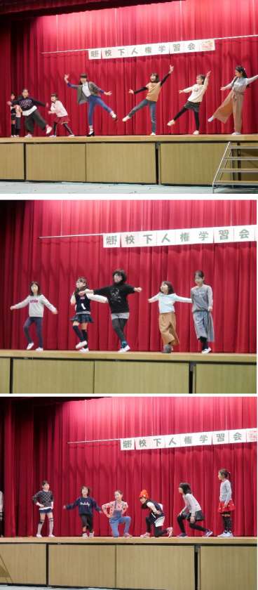 講堂での人権学習会の前に、ダンス部が舞台でダンスを披露してくれました。とても上手にダンスに、たくさんの観客から声援がおくられていました。