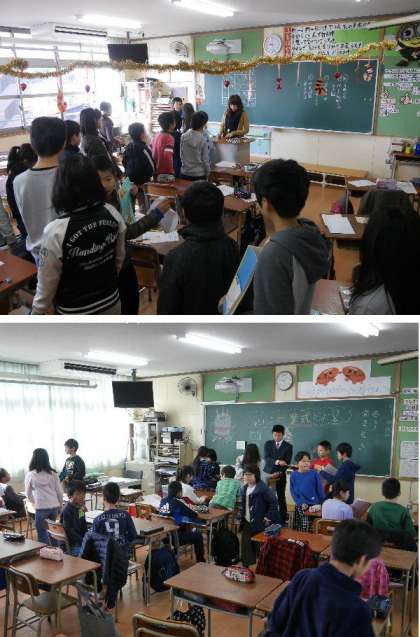 始業式のあと、各教室では宿題や通知表をあつめたり、配布プリントをくばっていました。