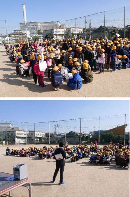 避難訓練のあと、今回は運動場に集団下校できるように、住居地域ごとに集合して、先生たちの引率のもと一斉に集団下校をしました。見守り隊の方々がいつも、子どもたちの安全を見守ってくださっています。いつもありがとうございます。