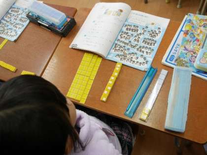 1年生の算数の授業では、48をあらわす学習をしていました。10のくらいと1のくらいに分けて、数をかぞえられるようになってきました。
