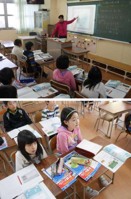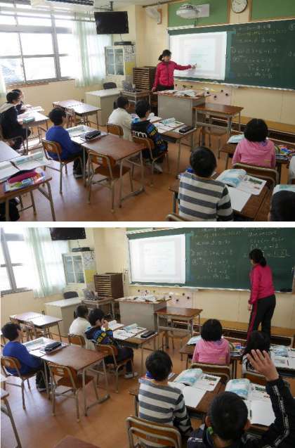 4年生が各教室に分かれて、少人数で算数の授業をうけています。小数のかけ算とわり算について学習しいます。いろいろな計算があるけど、こんがらないように整理しておぼえましょうね。復習が大切です。