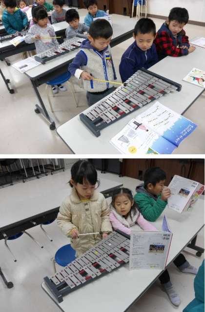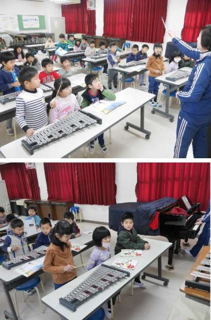 1年生がてっきんで演奏の練習をしています。「きらきらぼし」をたたきました。みんなで歌とてっきんで楽しく演奏できましたね。