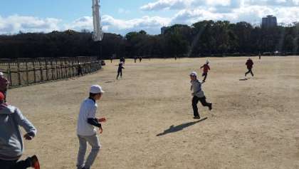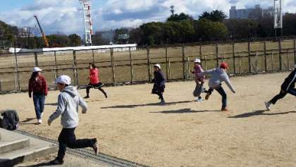 お弁当のあと、皆でおにごっこで遊んでいます。