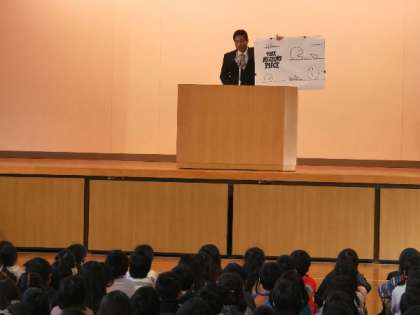 毎週月曜日の全校朝会では、校長先生からいろいろなお話しをしています。