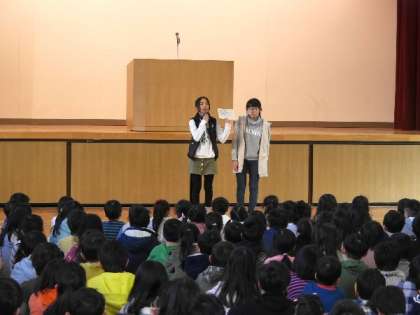 校長先生の話のあと、挨拶運動とハガキ回収についてなど、児童会から連絡がありました。