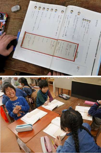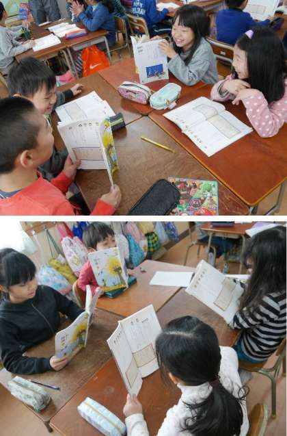 3年の国語の授業です。「わらい話を楽しもう」で「白ねずみ」のお話しを役割を決めて読みあいのした。だんな役、白みずみ役、奉公人役に分かれて、読みあいました。恥ずかしがらずに、役になりきってがんばりましょう。